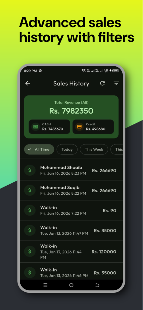 Protect your Shop Management data with biometric Fingerprint or PIN App Lock.